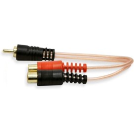 This DB Link X-Series RCA Y Adapter (2 Male–1 Female) boasts a clear plastic jacket, a high-performance oxygen-free shielded cable, a copper conductor and a 24k gold-plated split tip.