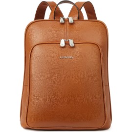 BOSTANTEN Genuine Leather Backpack Purse for Women 15.6 inch Laptop Backpack Large Travel College Shoulder Bag Yellow-beige