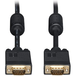 The Tripp LiteR 6ft XVGA SVGA VGA monitor extension cable is the gold standard in video cables. The mini-coax RGB and paired video wire construction delivers superior signal quality. Gold-plated connectors and gold-plated copper contacts ensure excellent conductivity. Double shielding foil and braid provides maximum EMI RFI protection. Both the high-density DB15 male and high-density DB15 female connectors are molded and have integral strain relief to ensure they last a long time. Tripp LiteR warrants this product to be free from defects in materials and workmanship for life.